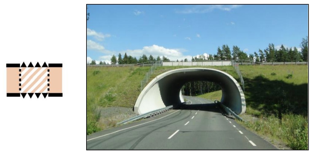 - In the International Orienteering Federation example below, it is a road (paved area) above and canopy or tunnel below.